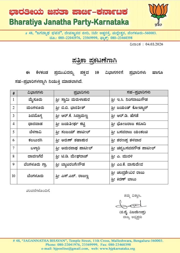 ದಾವಣಗೆರೆ ವಿಭಾಗವು ಚಿತ್ರದುರ್ಗ, ದಾವಣಗೆರೆ ಮತ್ತು ತುಮಕೂರು ಜಿಲ್ಲೆಗಳನ್ನು ಒಳಗೊಂಡಿದ್ದು, ಮುಂಬರುವ ವಿವಿಧ ಚುನಾವಣೆಗಳ ದೃಷ್ಟಿಯಿಂದ ಈ ನೇಮಕ ಬಹಳ ಮಹತ್ವದ್ದಾಗಿದೆ.