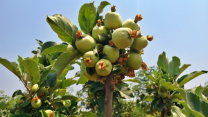 ಬರಡು ಭೂಮಿಯೇ ಹೆಚ್ಚಿರುವ ಜಗಳೂರಿನಲ್ಲಿ ಆ್ಯಪಲ್ ಬೆಳೆದು ರೈತ ಹುಬ್ಬೇರಿಸುವ ಸಾಧನೆ ಮಾಡಿದ್ದಾನೆ. ಸೇಬು ಸಸಿ ಹಾಕಿದ್ದು, ಈಗಾಗಲೇ ಗೊಂಚಲು ಗೊಂಚಲು ಸೇಬು ಕಾಯಿಗಳು ಬಿಟ್ಟಿವೆ. ಇನ್ನೇನು ಮೇ ತಿಂಗಳ ಕೊನೆಯಲ್ಲಿ ರೈತನಿಗೆ ಭರಪೂರ ಫಸಲು ಸಿಗಲಿದೆ.