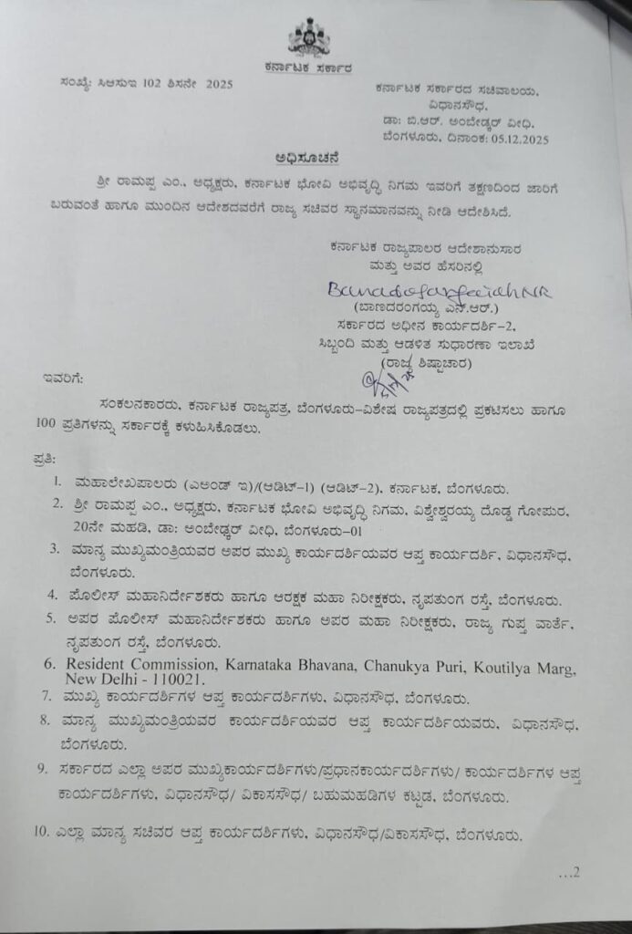 ಕರ್ನಾಟಕ ಸರ್ಕಾರದಿಂದ ಭೋವಿ ನಿಗಮ ಅಧ್ಯಕ್ಷ ಎಂ. ರಾಮಪ್ಪರಿಗೆ ರಾಜ್ಯ ಸಚಿವ ಪದವಿ.