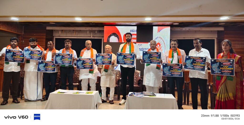 ಈ ಸಂಬಂಧ ಚಿತ್ರದುರ್ಗ ನಗರದ ಜಗಳೂರು ಮಹಾಲಿಂಗಪ್ಪ ಸಭಾಂಗಣದಲ್ಲಿ ಶನಿವಾರ ಭಾರತೀಯ ಜನತಾ ಪಾರ್ಟಿವತಿಯಿಂದ ಹಮ್ಮಿಕೊಳ್ಳಲಾಗಿದ್ದ “ಪಂಡಿತ್ ದೀನದಯಾಳ್ ಉಪಾಧ್ಯಾಯ ಪ್ರಶಿಕ್ಷಣ ಮಹಾಭಿ ಯಾನ-2026″ರ ದಾವಣಗೆರೆ ವಿಭಾಗ ವಿಷಯ ಪ್ರಮುಖರ ಕಾರ್ಯಗಾರದಲ್ಲಿ ಇದಕ್ಕೆ ಸಂಬಂಧಪಟ್ಟಂತೆ ಭಿತ್ತಿ ಪತ್ರವನ್ನು ಪಕ್ಷದ ಮುಖಂಡರು ಬಿಡುಗಡೆ ಮಾಡಿದರು.