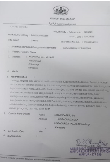 ವಿ.ವಿ. ಸಾಗರ ಜಲಾಶಯದ ಗೇಟ್ ಓಪನ್ ಮಾಡಿಸಿದ, ಶಾಸಕ ಬಿ.ಜಿ ಗೋವಿಂದಪ್ಪ: ವಿರುದ್ಧ ದೂರು.