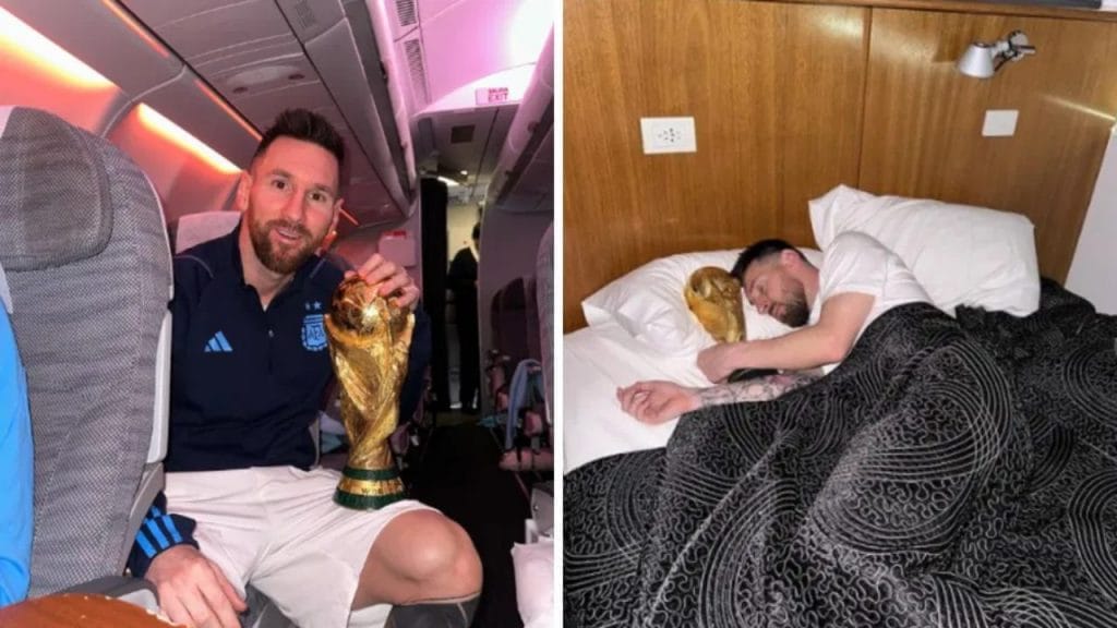 ಕಪ್ ಗೆದ್ದು 48 ಗಂಟೆಗಳೂ ಕಳೆದಿದ್ದರೂ ಕೂಡ ಮೆಸ್ಸಿಗೆ ಟ್ರೋಫಿಯನ್ನು ಬಿಟ್ಟು ಹೋಗುವ ಮನಸ್ಸಾಗಿಲ್ಲ. ಮೆಸ್ಸಿ ಊಟ ಮಾಡುವುದು ಟ್ರೋಫಿಯೊಂದಿಗೆ ಹಾಗೆಯೇ ಮೆಸ್ಸಿ ಮಲಗುವಾಗಲು ಸಹ ಟ್ರೋಫಿಯನ್ನು ತನ್ನ ಪಕ್ಕದಲ್ಲಿ ಇಟ್ಟುಕೊಂಡು ನಿದ್ರಿಸುತ್ತಿದ್ದಾರೆ. ಈ ಫೋಟೋಗಳನ್ನು ಮೆಸ್ಸಿ ಸೋಶಿಯಲ್ ಮೀಡಿಯಾದಲ್ಲಿ ಹಂಚಿಕೊಂಡಿದ್ದು, ಮೆಸ್ಸಿ ಅಭಿಮಾನಿಗಳು ಕೂಡ ಸಂತಸ ವ್ಯಕ್ತಪಡಿಸಿದ್ದಾರೆ. ಪೋಸ್ಟ್ ಮಾಡಿದ ಕೆಲವೇ ನಿಮಿಷಗಳಲ್ಲಿ ಲಕ್ಷಾಂತರ ಲೈಕ್ಗಳು ಬಂದಿವೆ.