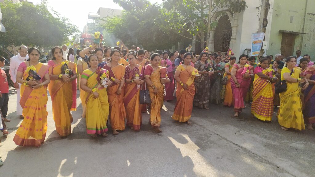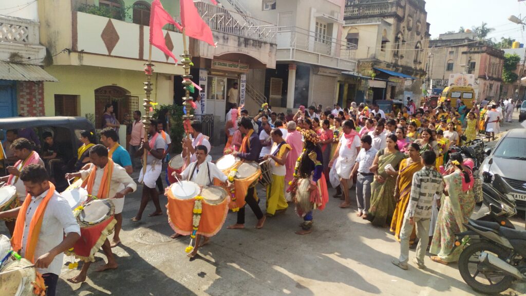 ಈ ಸಂದರ್ಭದಲ್ಲಿ ಭಾಗವಹಿಸಿದ್ದ ಶಿವಸಿಂಪಿ ಮಹಿಳಾ ಘಟಕದ ಪದಾಧಿಕಾರಿಗಳು ಹಳದಿ ಸೀರೆಯನ್ನು ಧರಿಸಿ ತಲೆಯ ಮೇಲೆ ಕುಂಭವನ್ನು ಇಟ್ಟುಕೊಂಡು ಮೆರವಣಿಗೆಯಲ್ಲಿ ಸಾಗುತ್ತಿದ್ದ ದೃಶ್ಯ ಕಂಡು ಬಂದಿತು. ಇದ್ದಲ್ಲದೆ ಹಲವಾರು ಭಕ್ತರು ಪುರವಂತರಿAದ ತಮ್ಮ ಬಾಯಿಗೆ, ಕೈಗೆ ಹಿತ್ತಾಳೆಯಿಂದ ಮಾಡಿದ ದಬ್ಬಳದ ರೀತಿಯ ವಸ್ತುವಿನಿಂದ ಚುಚಿಸಿಕೊಂಡಿದ್ದು ಕಂಡು ಬಂದಿತು. ಇದು ಸಹಾ ವೀರಭದ್ರನಿಗೆ ಪ್ರಿಯವಾದ ಕಾರ್ಯ ವಾಗಿದೆ. ಗುಗ್ಗುಳ ಮೆರವಣಿಗೆ ಬರುವ ದಾರಿಯಲ್ಲಿನ ಭಕ್ತರ ಮನೆಗಳ ಮುಂದೆ ರಸ್ತೆಯನ್ನು ಗುಡಿಸಿ ನೀರನ್ನು ಹಾಕಿ ರಂಗೋಲಿಯನ್ನು ಬಿಡಿಸಿ ಗುಗ್ಗಳವನ್ನು ಸ್ವಾಗತಿಸಿದರು. ಇದ್ದಲ್ಲದೆ ಕೆಲವು ಭಕ್ತರು ತಮ್ಮ ಮನೆಗಳ ಮುಂದೆ ಗುಗ್ಗಳದಲ್ಲಿ ಆಗಮಿಸಿದವರು ಮಜ್ಜಿಗೆ, ನೀರು, ಪಾನಕವನ್ನು ನೀಡಿದರು.