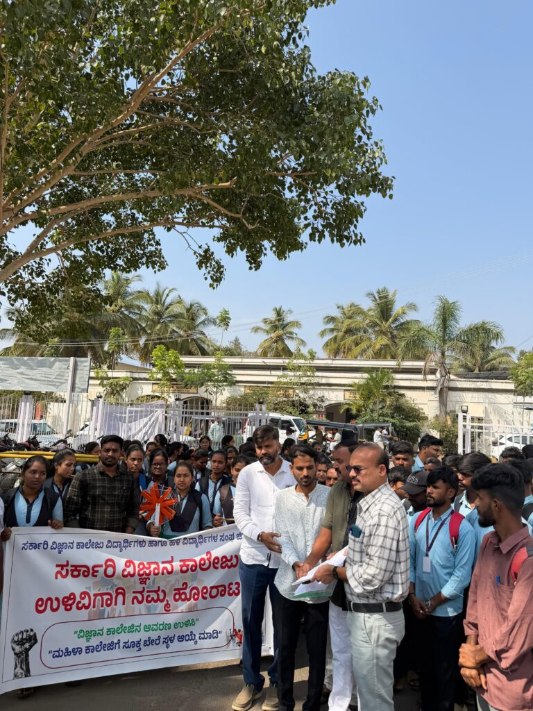 ನಗರದ ವಿಜ್ಞಾನ ಕಾಲೇಜು ಮುಂಭಾಗದಿಂದ ವಿದ್ಯಾರ್ಥಿಗಳು ಜಾಥಾವನ್ನು ನಡೆಸಿ ಜಿಲ್ಲಾಧಿಕಾರಿ ಕಚೇರಿ ಬಳಿ ಪ್ರತಿಭಟನೆ ನಡೆಸಿದ್ದಾರೆ. ನಾವು ಮಹಿಳಾ ಶಿಕ್ಷಣಕ್ಕೆ ಅಥವಾ ಮಹಿಳಾ ಕಾಲೇಜ್ ನಿರ್ಮಾಣಕ್ಕೆ ಯಾವುದೇ ರೀತಿಯ ವಿರೋಧಿಗಳಲ್ಲ, ಮಹಿಳಾ ಶಿಕ್ಷಣವನ್ನು ನಾವು ಸಂಪೂರ್ಣವಾಗಿ ಬೆಂಬಲಿಸುತ್ತೇವೆ. ಆದರೆ, ಸೈನ್ಸ್ ಕಾಲೇಜಿಗೆ ಮೀಸಲಾದ ಆವರಣವನ್ನು ಬಳಸಿ ಮತ್ತೊಂದು ಕಾಲೇಜ್ ನಿರ್ಮಿಸುವ ತೀರ್ಮಾನವು ಅಯೋಜಿತ, ಅಸೈಂಟಿಫಿಕ್ ಹಾಗೂ ಶೈಕ್ಷಣಿಕವಾಗಿ ಅನ್ಯಾಯಕರವಾಗಿದೆ. ಈ ಆವರಣದಲ್ಲಿ ಈಗಾಗಲೇ ಸುಮಾರು 40–50 ವರ್ಷಗಳಿಂದ ಇರುವ ಅಪರೂಪದ ಮರಗಳು, ಹಸಿರು ವಾತಾವರಣ ಮತ್ತು ಜೀವವೈವಿಧ್ಯವಿದ್ದು, ಇದು ವಿಜ್ಞಾನ ಶಿಕ್ಷಣದ ಅವಿಭಾಜ್ಯ ಭಾಗವಾಗಿದೆ ಹಾಗಾಗಿ ವಿಜ್ಞಾನ ಕಾಲೇಜು ಮುಂಭಾಗದಲ್ಲಿ ಸರ್ಕಾರಿ ಮಹಿಳಾ ಕಾಲೇಜು ಕಟ್ಟಡವನ್ನ ನಿರ್ಮಾಣ ಮಾಡದಂತೆ ನಿರ್ಭಂಧಿಸಬೇಕೆಂದು ಪ್ರತಿಭಟನೆ ನಡೆಸಿದರು.