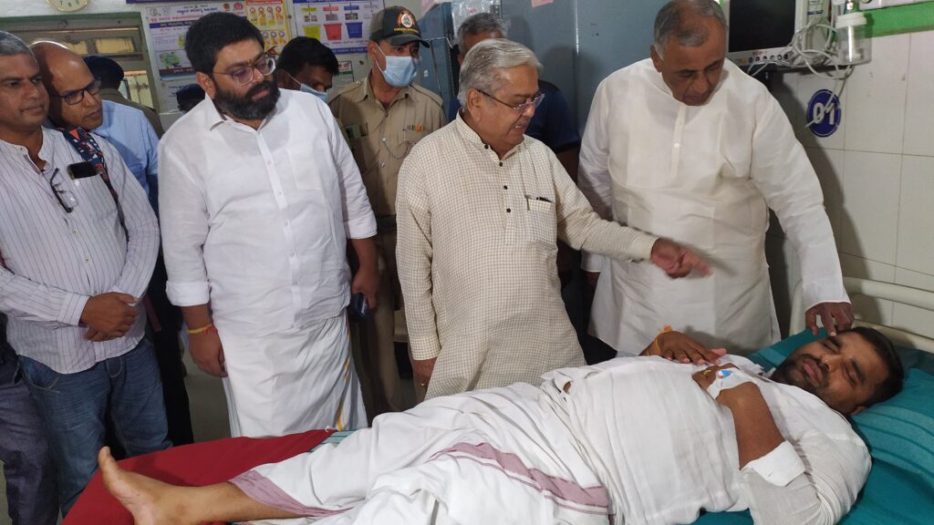 ಚಿತ್ರದುರ್ಗ ಜಿಲ್ಲಾ ಅಸ್ಪತ್ರೆಯಲ್ಲಿ ಚಿಕಿತ್ಸೆ ಪಡೆಯುತ್ತಿರುವ ಹನುಮಂತೇಗೌಡರವರ ಆರೋಗ್ಯವನ್ನು ವಿಚಾರಿಸಿ ನಂತರ ಸುದ್ದಿಗಾರರೊಂದಿಗೆ ಮಾತನಾಡಿದ ಸಂಸದರು, ನಿನ್ನೆ ರಾತ್ರಿ ನಗರದ ಐಶ್ವರ್ಯ ಪೋಟ್ ಬಳಿ ಮಧುಗಿರಿನ ಬಿಜೆಪಿ ಜಿಲ್ಲಾಧ್ಯಕ್ಷರ ಹನುಮಂತೇಗೌಡ ಹಾಗೂ ಪಿಎಸ್.ಐ. ಗಾದ್ರಿ ಲಿಂಗಪ್ಪ ಗೌಡರವರ ನಡುವೆ ಮಾತಿನ ಚಕಮಕಿ ನಡೆದು ಇಬ್ಬರು ಸಹಾ ಇಬ್ಬರ ಮೇಲೆ ಇಬ್ಬರು ಹಲ್ಲೆ ಮಾಡಿದ್ದಾರೆ. ಇವರನ್ನು ಕೊಲೆ ಮಾಡುವ ಹಿನ್ನಲೆಯಲ್ಲಿ ಪೋಲಿಸ್ ಅಧಿಕಾರಿ ತನ್ನ ಬಳಿ ಇದ್ದ ಪಿಸೂಲ್ನ್ನು ತೆಗೆದು ಇವರ ಮೇಲೆ ಗುರಿ ಇಟ್ಟಿದ್ದಾನೆ. ಇದನ್ನು ತಪ್ಪಿಸುವ ಸಲುವಾಗಿ ಹನುಮಂತೆಗೌಡ ಅವರ ಕೈಯನ್ನು ಹಿಡಿದಿದ್ದಾನೆ ಈ ಸಮಯದಲ್ಲಿ ಅವರ ಬೆರಳಿಗೆ ಗಾಯವಾಗಿದೆ, ಇದರಿಂದ ಆತ ನನನ್ನು ಹೊಡೆದಿದ್ದಾನೆ ಎಂದು ಹನುಮಂತೇಗೌಡರವರ ಮೇಲೆ ಹಲ್ಲೆ ಮಾಡಿದ್ದಾನೆ ಎದೆಗೆ, ತಲೆಗೆ, ಗುಪ್ತಾಂಗಕ್ಕೆ ಬೂಟ್ ಕಾಲಿನಿಂದ ಹೊಡೆದಿದ್ದಾನೆ. ಇದರಿಂದ ಗಾಯಗೊಂಡ ಅವರನ್ನು ಚಿಕಿತ್ಸೆಗಾಗಿ ಜಿಲ್ಲಾ ಆಸ್ಪತ್ರೆಗೆ ದಾಖಲಿಸಲಾಗಿದೆ ಎಂದರು.